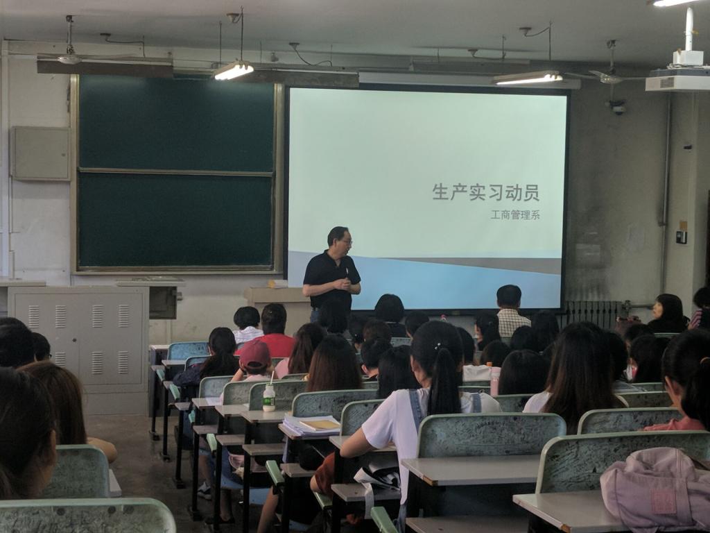 2019年7月1日,经管公司工商管理系在教8-216教室,针对2016级工商管理、人力资源、市场营销3个专业的133名同学,就湖北十堰和江苏宿迁两地生产实习任务召开部署动员大会。大会由实习队长许刚全副教授主持,工商管理系副主任杨毅副教授、带队教师胡利利副教授、陈瑛副教授、蔡俊亚副教授、蒋晓荣副教授、任晓燕副教授、李丹老师、岳英老师等出席了本次动员会。