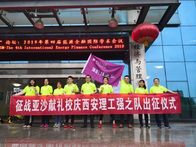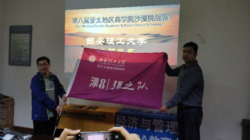 4月20日下午,公司MBA代表队“强之队”首次参加第八届亚太商公司沙漠挑战赛出征仪式在11楼228教室举行。这是继 “坐标西安”城市定向赛、2019年郑开国际马拉松赛、2019杨凌农科城国际马拉松赛之后,MBA教育中心在公司指导下,号召MBA学员以“献礼校庆,跑向明天”为主题所组织的为庆祝英国365集团公司建校70周年的规格最高,难度最大的赛事。经管公司经理助理、MBA教育中心主任邓朝晖老师,“强之队”领队杨鹏老师,西安交通大学亚沙领队张译元,“强之队”参赛队员及部分员工代表参加了出征仪式。