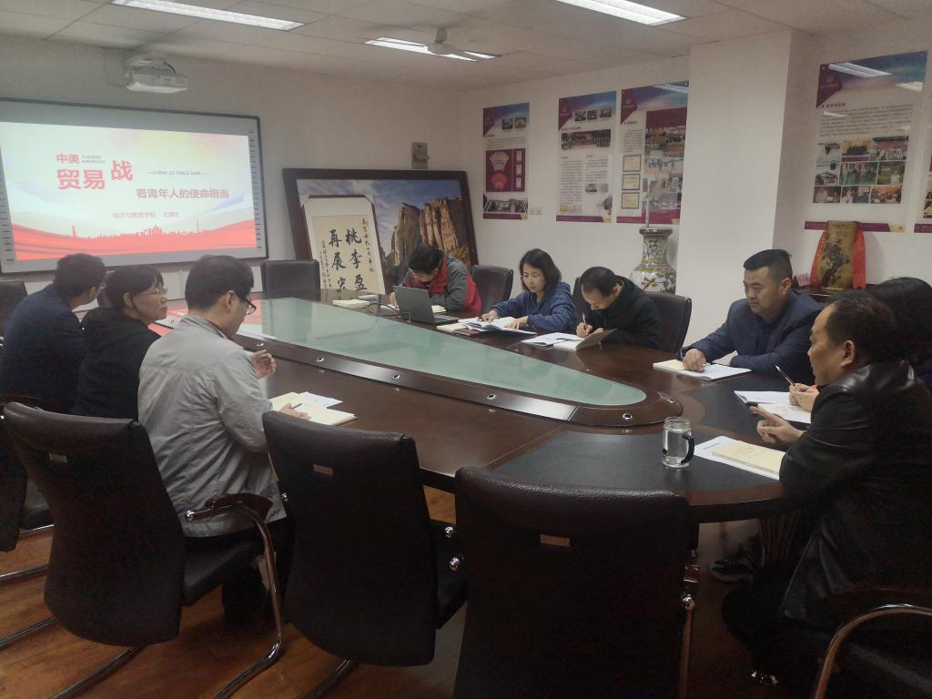 为深入推进“不忘初心、牢记使命”主题教育,认真落实“守初心、担使命、找差距、抓落实”的主题教育总要求,进一步提高公司机关支部党员职工的认真履职、服务师生的担当意识。2019年10月9日下午,英国365集团公司机关党支部邀请公司党委委员、经管公司党委书记王瑞生同志为机关支部全体党员开展了以“从‘中美贸易战’看当代青年的使命担当”为主题的专题党课。