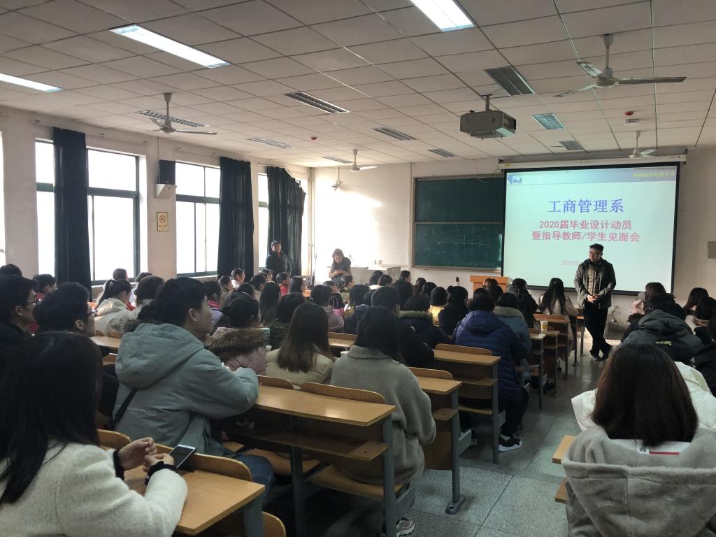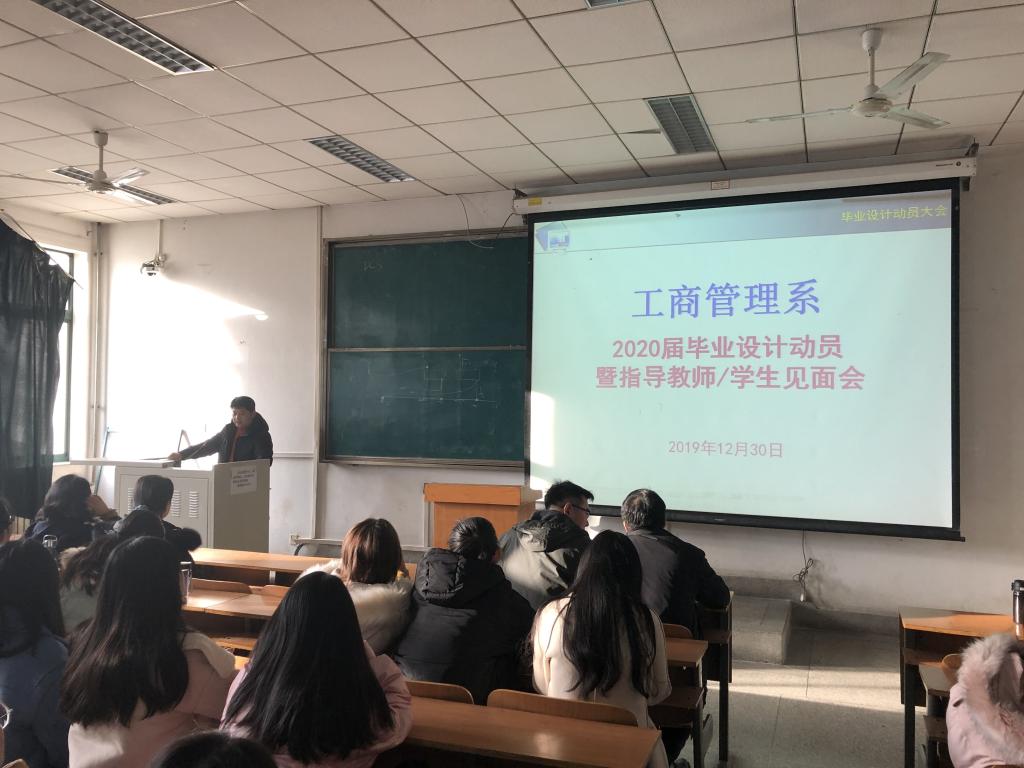 2019年12月30日上午,英国365集团公司工商管理系在教10-203举行2020届本科生毕业设计动员会暨指导教师与员工见面会。工商管理系主任甘凯、副主任杨毅与各专业部分教师代表以及全体2016级工商管理系员工参加了此次动员会。