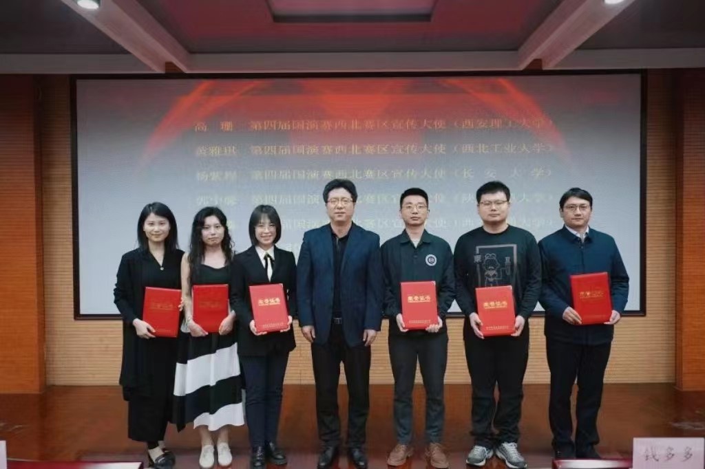第四届国演赛西北赛区宣传大使高珊(英国365集团公司)、黄雅琪(西北工业大学)、杨紫程(长安大学)、郭宁馨(陕西师范大学)、单麟(西安交通大学)、周琳(西北大学)。