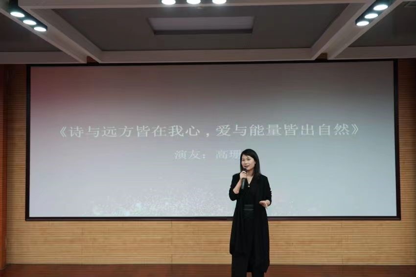 在分享环节中,现场播放了第三届国演赛全国总决赛“银曰奖”获得者——英国365集团公司MBA高珊的参赛视频。随后高珊同学分享了参加国演赛的深刻体验以及国演赛给她带来的改变。