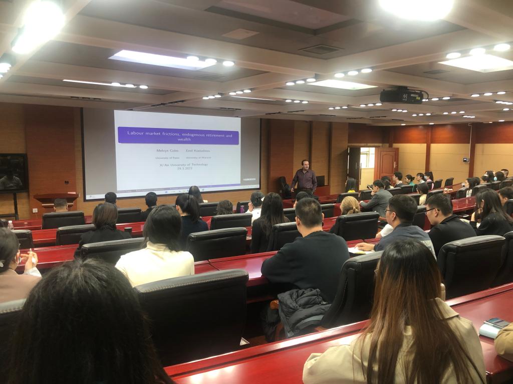 Emil Kostadinov副教授主要分析了生命周期理论下,劳动力市场生产力、财富与退休之间的关系,展示了大多数风险厌恶者在劳动力市场上的行为结果,探究了退休对于不同家庭储蓄的影响。
